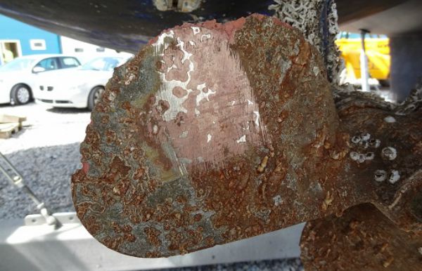 Hamble Marine Surveys recently assisted a concerned boat owner who discovered that there appeared to be excessive pitting and corrosion about the rudder stock on his Najad. Julian Smith of Hamble Marine Surveys arranged for a full inspection and removal of the rudder to test the tock and blade. The Aluminium rudder stock was heavily pitted around the water line and corroded to the point that the structural integrity of the stock was impaired. It was decided that a new stainless steel rudder stock should be made and this was project managed and all work signed off.